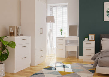 With its sleek metal handles and wood effect finish this stunning design gives both a traditional and contemporary feel to any room. Available in a number of different pieces to cater for your individual storage and styling needs.
