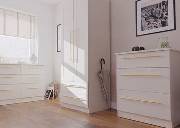 The Haworth Range is a beautifully elegant shaker inspired panelled design, recessed fronts and gold effect handles. With this range you have the freedom to choose from a wide range of furniture configurations, allowing you to create the perfect combination to optimise your storage space.